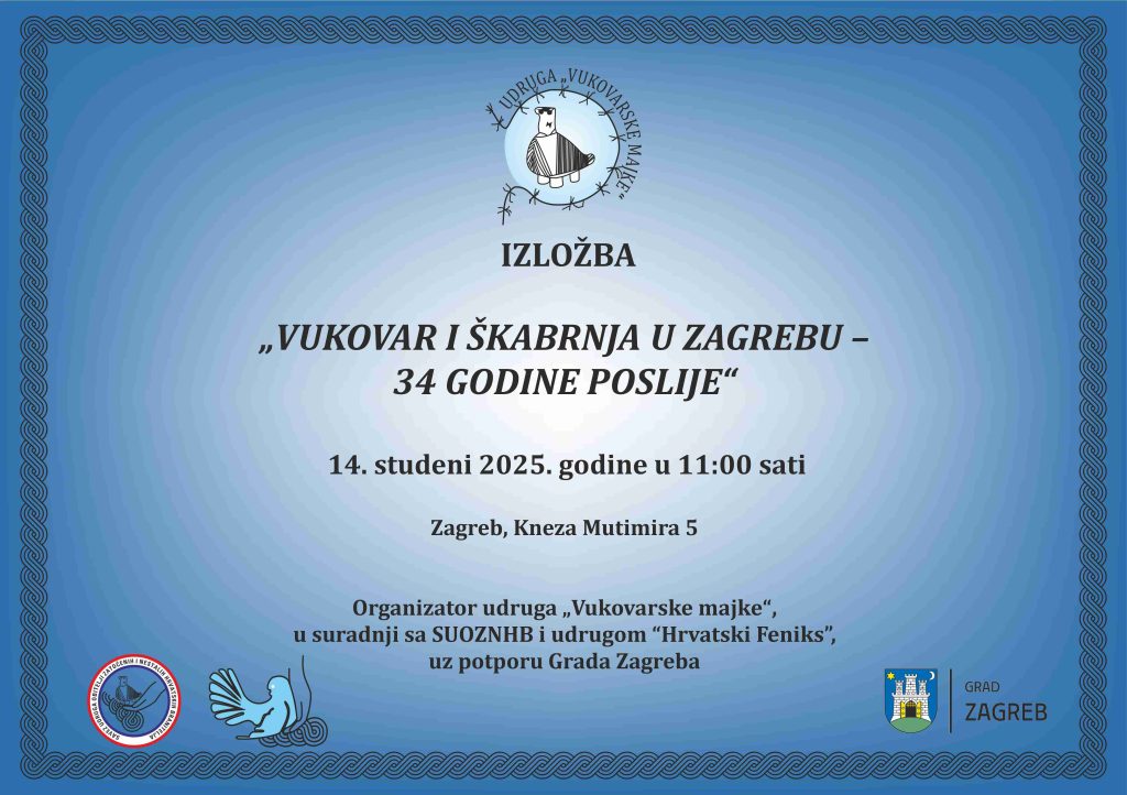 Udruga “Hrvatski Feniks” sudjeluje u organizaciji izložbe „Vukovar i Škabrnja u Zagrebu – 34 godine poslije“, koja će se održati 14. studenoga 2025. godine u 11:00 sati, na adresi Kneza Mutimira 5, Zagreb.